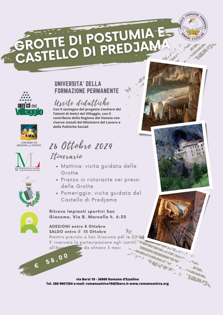 TRASPORTI E USCITE DIDATTICHE ASOLO MEDIEVALE VILLA PISANI ORTO BOTANICO DI PADOVA TRIESTE E IL CASTELLO DI DUINO VENEZIA DI NOTTE GROTTE DI POSTUMIA